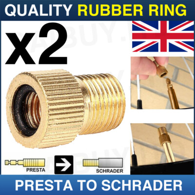 Tu as une pompe avec embout Schrader mais des valves Presta sur ton vélo ? Pas de panique, ces 2 adaptateurs vont tout arranger ! Ils transforment une valve Presta en valve Schrader en quelques secondes, compatible avec la plupart des pompes à air. Couleur dorée, fabriqués en Chine, marque non spécifiée. Neufs sous emballage. Super pratiques pour les voyages, les sorties groupe, ou si tu changes souvent de vélo. Plus besoin d’acheter une nouvelle pompe : garde un adaptateur dans ta trousse à outils, et tu seras toujours prêt à regonfler. Petit prix, grande utilité !