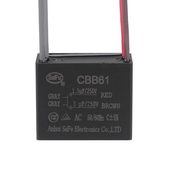 Ce condensateur CBB61 est un composant courant pour les moteurs monophasés, notamment dans les ventilateurs de plafond, les pompes, les hottes de cuisine, etc. Il a une tension max de 450V, une tolérance de ±5%, et se monte en surface avec des connexions par câbles. De forme rectangulaire, il est neuf, sous emballage, de la marque UK Trusted Parts (générique). Si votre appareil ne démarre plus, tourne mal, ou fait un bourdonnement, le condensateur de démarche/marche est souvent en cause. Un remplacement simple pour qui sait manipuler en sécurité (débrancher l'appareil !).