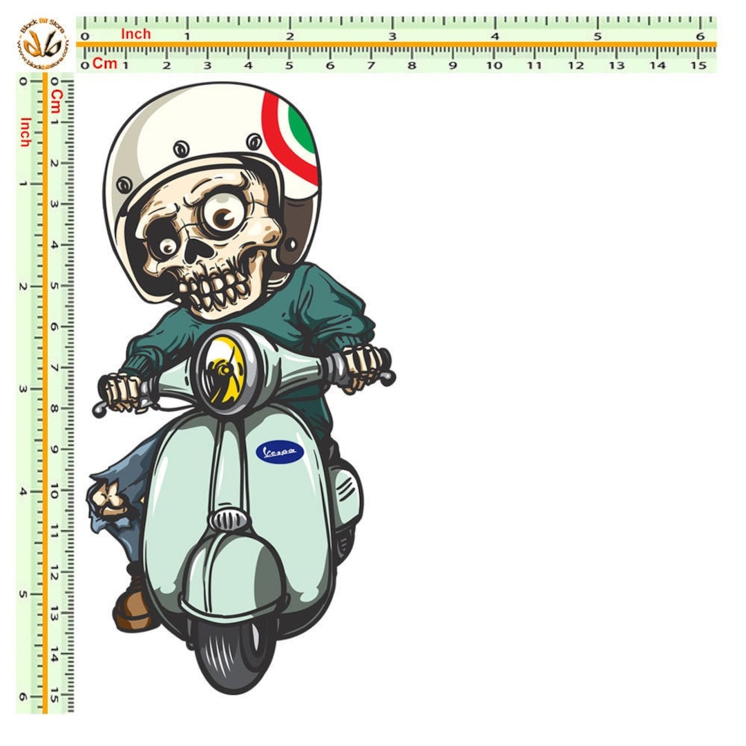 Un autocollant vinyl de qualité, au design trop stylé : un crâne motard chevauchant une Vespa ! Finition brillante, résistant aux intempéries. Fabriqué en Australie, garanti 3 ans. Adhésif fort, facile à poser sur toute surface lisse. Parfait pour personnaliser votre voiture, bumper, vitre, caravane, van, skateboard, casque, frigo, ordinateur portable… Presque partout où vous voulez ajouter une touche rock, rétro ou rebelle. Marque générique, mais la qualité est là. Vendu neuf, dans son emballage. Dimensions moyennes (environ 10-15 cm), mais vérifiez les photos pour l'échelle. Un cadeau sympa pour un fan de scooters, de crânes, ou pour vous-même ! Livraison avec le sticker. Collez-le, et roulez !