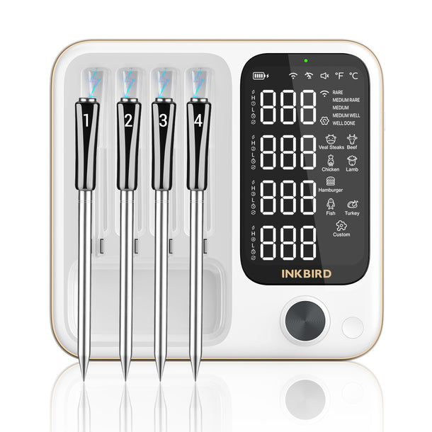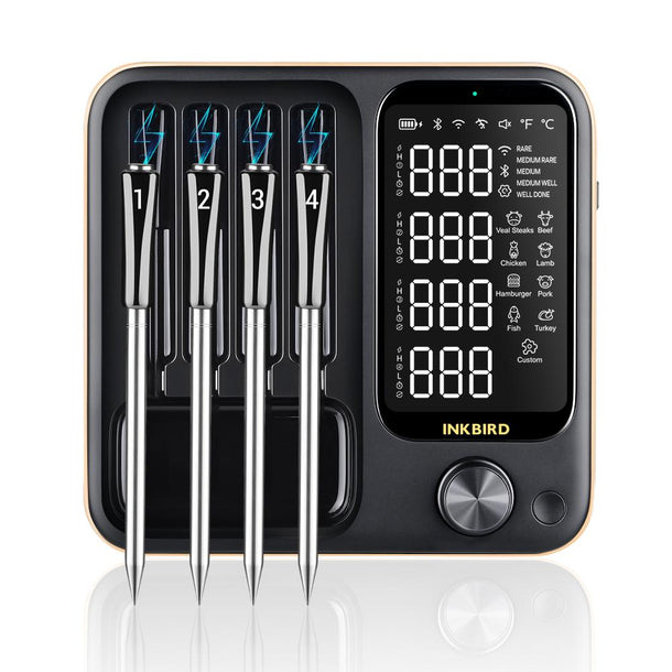 Fini la viande trop cuite ou pas assez ! Ce thermomètre Inkbird connecté via Bluetooth et Wi-Fi vous permet de surveiller la température de votre plat à distance, depuis votre smartphone. Une ou plusieurs sondes peuvent être utilisées pour différents morceaux. L'appli propose des programmes de cuisson, des alarmes personnalisables. Parfait pour les BBQ, les rôtis, les grillades, la pâtisserie. Il est blanc, en plastique et métal, avec un écran digital. Garantie 1 an, fabriqué en Chine mais de bonne qualité. Cuisinez comme un pro, sans rester collé au four !