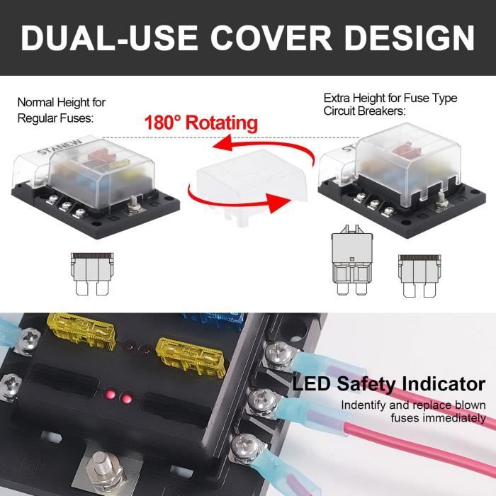 C’est l’accessoire idéal pour remplacer un ancien bloc défectueux, ou pour créer une installation électrique propre, modulaire et sûre. Plus de fils emmêlés, chaque circuit est protégé par son propre fusible. Un must pour les bricoleurs auto et les passionnés d’électricité !