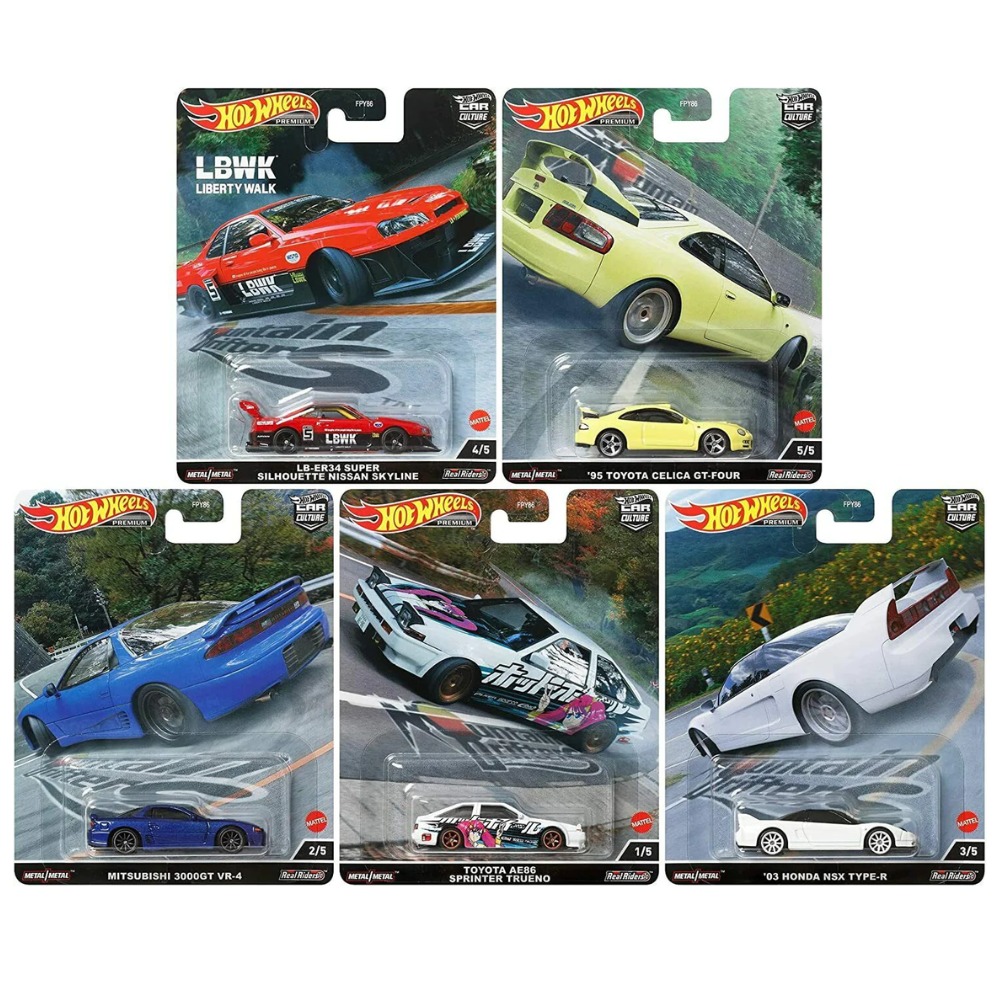 Salut les collectionneurs ! Si tu cherches des modèles Hot Wheels un peu plus spéciaux que les basiques, ce lot est pour toi. Il contient 5 voitures de la série \Car Culture\, édition \Auto Strasse\ (série Q Case) sortie en 2022. Ces petites voitures sont en diecast (métal), à l'échelle 1:64, avec des détails et des peintures bien plus poussés que les modèles classiques.