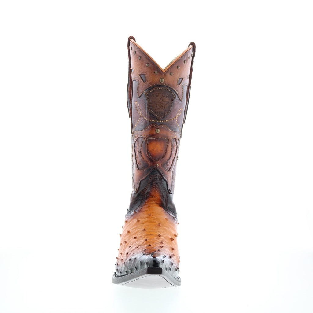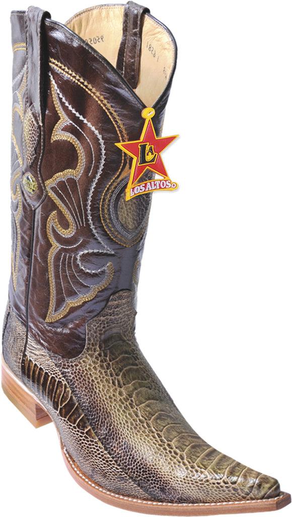 Howdy les cowboys ! Ces bottes Los Altos sont de vraies pièces d'artisanat, fabriquées au Mexique avec du cuir d'autruche de qualité. Le modèle 3X Toe (bout très pointu) et la couleur marron en font un classique du style western.