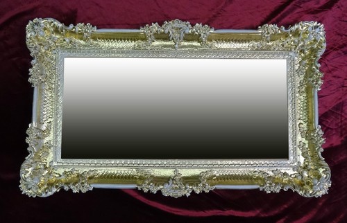 Tu veux ajouter une touche de grandeur et de classicisme à ton intérieur ? Ce miroir mural de style baroque est une déclaration. Il est ENORME : 180 cm de haut sur 90 cm de large, de forme rectangulaire. Le cadre est une reproduction de style antique baroque, en polyrésine teintée or, avec des moulures et des volutes typiques de l'époque. Le miroir lui-même est en verre. C'est une réplique (pas un antique), neuve, dans son emballage. Parfait pour un salon, un hall d'entrée, une chambre à coucher avec du caractère, ou même un espace commercial pour créer de la profondeur. Il apportera de la lumière et donnera l'impression d'agrandir l'espace. Le style est chargé et théâtral, donc à associer avec un décor qui va avec. Livraison probablement en colis volumineux, prévois de l'aide pour l'installation. Prêt à devenir la pièce maîtresse de ta décoration !