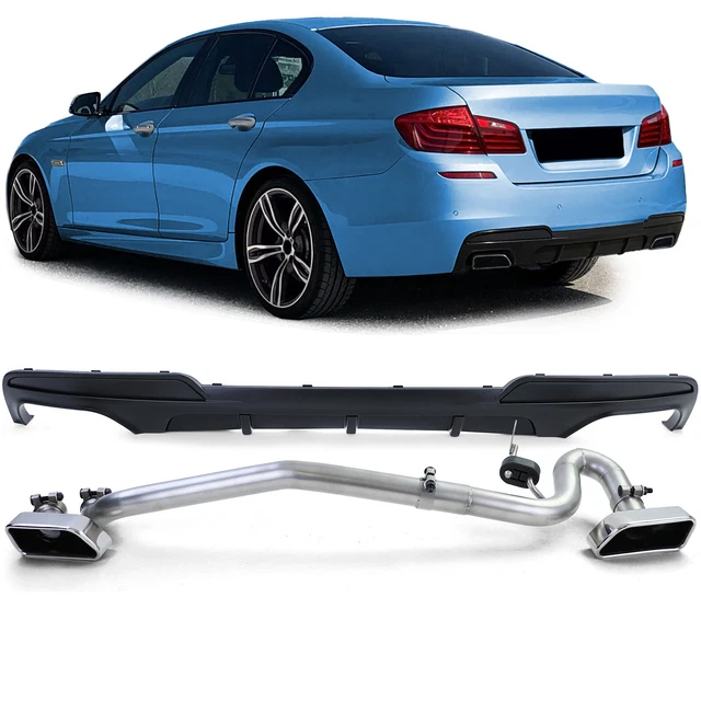 Un diffuseur arrière (spoiler inférieur) super agressif, style M5 Performance, pour ta BMW Série 5 F10 (berline) ou F11 (break) des années 2010 à 2017. Il est en noir mat, et prévu pour accueillir un système d'échappement à 4 sorties (tu dois déjà avoir ou installer un échappement 4 pots). ATTENTION : il est conçu pour les modèles ayant déjà le pack M d'origine (ou pour une conversion complète). Marque DM AUTOTEILE. NEUF, sous emballage. Si tu veux donner un look super sportif et racing à ta BMW, ce diffuseur change complètement la donne. L'installation demande de démonter l'ancien diffuseur et probablement de percer/ajuster. Vérifie BIEN les dimensions sur les photos et la compatibilité avec ton modèle exact. EAN : 4099654013142. Pour les amateurs de tuning BMW.