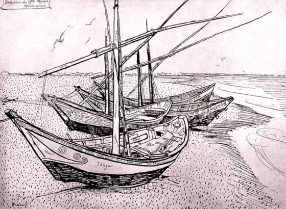 Bonjour les amateurs d'art ! Cette belle reproduction représente le tableau \Bateaux de pêche aux Saintes-Maries\ du célèbre Vincent van Gogh. C'est une impression Giclée de haute qualité sur toile, déjà encadrée, prête à accrocher. Le style est vintage, comme l'original peint avant 1900. Parfait pour apporter une touche de culture et de couleur à ton salon, bureau ou entrée. Le cadre ajoute une finition classe. C'est une réédition sous licence, donc de bonne qualité. Dimensions à vérifier avec le vendeur. Un cadeau idéal pour un fan de peinture ou pour toi-même si tu aimes les paysages maritimes vibrants. Donne du caractère à tes murs sans te ruiner ! Livraison protégée.