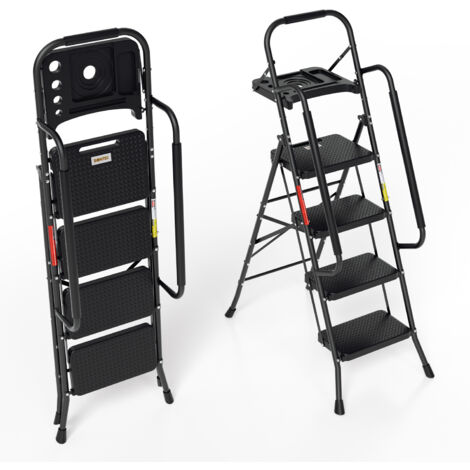 Pour les petits travaux en hauteur en toute sécurité ! Cette échelle pliante a 4 marches larges et antidérapantes, avec une poignée de maintien intégrée pour plus de stabilité. Capacité de charge : 300 livres (environ 136 kg). Hauteur totale : 52 pouces (environ 132 cm). Elle se plie à plat pour un rangement facile (mesures pliées : environ 141x46x4 cm). Fabriquée en métal et PE (plastique renforcé), couleur grise. Marque Segawe. Parfaite pour atteindre les étagères hautes, changer une ampoule, ou peindre un plafond. Neuf dans son emballage d'origine. Une échelle pratique, robuste, et peu encombrante.