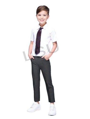 Ce pantalon d'école pour garçon a une coupe slim fit moderne, avec une taille demi-élastique pour plus de confort. Couleurs assorties noir, gris et bleu marine. Matière : 67% polyester, 33% viscose, donc résistant et facile à entretenir. Marque LSU, fabriqué au Royaume-Uni. Neuf avec étiquettes. Style pull-up (sans boutonnière). Parfait pour l'uniforme scolaire, les jours de classe ou les occasions formelles. Lavable en machine. Taille disponible à préciser. Un basique élégant et pratique pour toute l'année. Livraison rapide. Prêt pour l'école !