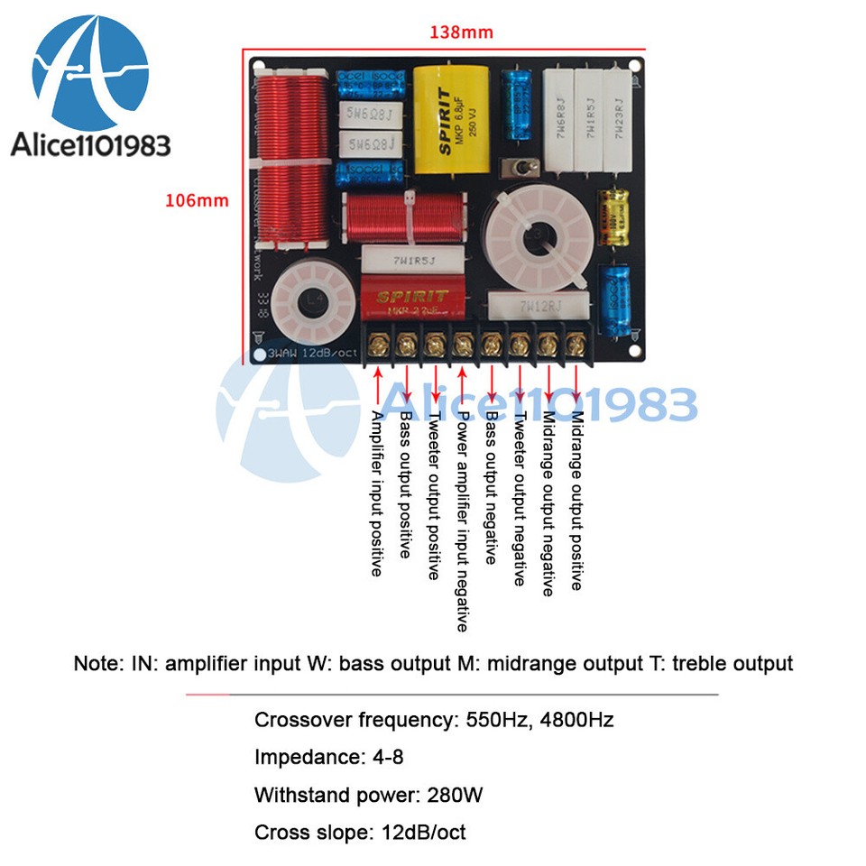 Tu construis ou répare tes propres enceintes acoustiques ? Ce filtre passif (crossover) 3 voies est un composant clé ! Il se place entre ton ampli et tes haut-parleurs pour répartir le signal : les basses fréquences (grave) vont au woofer, les moyennes (medium) au médium, et les hautes (aiguës) au tweeter. Cela améliore considérablement la clarté et la précision du son. Il est annoncé pour une puissance de 280 Watts (à vérifier sous quelle impédance). La marque est générique, sans numéro de pièce spécifique. Il est neuf dans son emballage. Parfait pour les projets DIY de baffles, de caissons d'enceinte home cinéma ou d'installation auto. Vérifie les fréquences de coupure et l'impédance recommandée directement sur l'annonce ou par test.