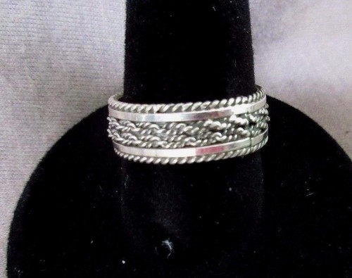 Une bague qui en jette ! Modèle biker tressé en argent 925 sterling, large et massif. Style rock, gothique ou punk, convient aux hommes et aux femmes. Taille probablement ajustable (à vérifier). Marque myringshop, référence 074. Neuf, mais sans écrin d'origine (vendu en sachet). Parfait pour un look affirmé, en quotidien ou pour une soirée. Qualité correcte, finition argentée brillante. Idéal pour offrir à un amateur de bijoux originaux. Livraison discrète.
