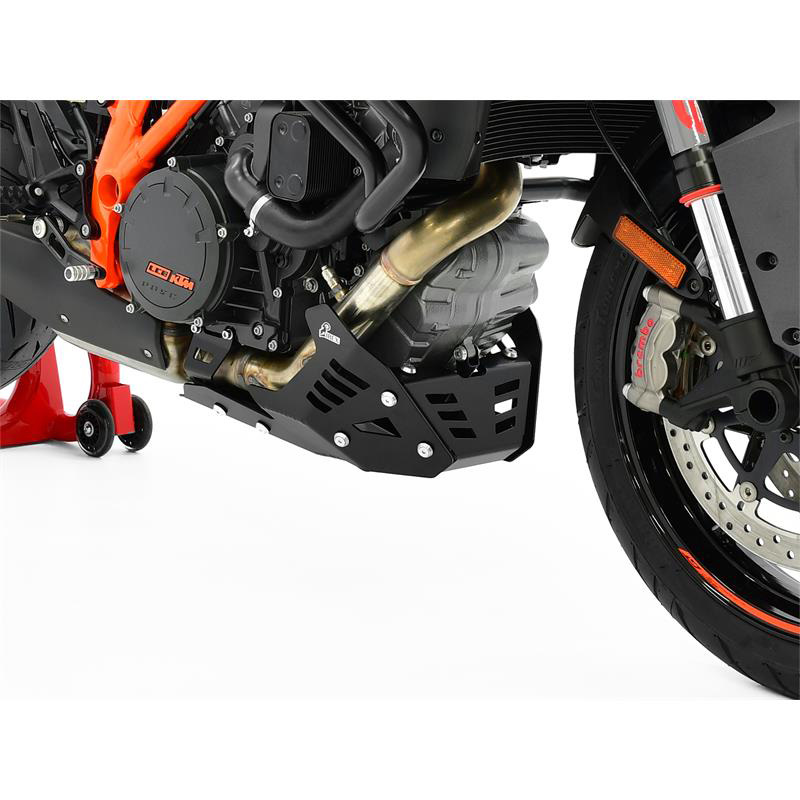 Pour tous les fans de KTM 1290 Super Duke R ou GT, voici une protection moteur (ou anti-encastrement) qui va vraiment booster la sécurité et le look de votre bécane ! Fabriquée par IBEX en Allemagne, cette pièce est en aluminium épais de 3 mm, avec une finition pulvérisée noir et orange qui rappelle les couleurs KTM. Elle se monte en position inférieure (sous le carénage) et se fixe par vissage, fournie avec son kit de montage complet. C'est du direct replacement, donc pas besoin de modifier quoi que ce soit. En plus de protéger le moteur en cas de contact avec le sol, elle ajoute un côté agressif et sportif à votre moto. Neuf, jamais monté, dans son emballage d'origine. La référence fabricant est 10004573, et l'EAN est 4251361251167. Conçue pour résister aux chocs et aux vibrations, c'est un investissement malin pour préserver votre belle mécanique. Que vous rouliez sur circuit ou sur route, cette protection IBEX est un must-have. Commandez-la, et montez-la en quelques minutes seulement !
