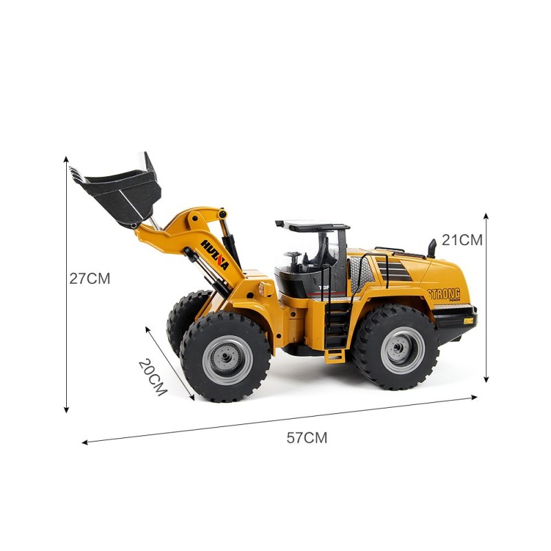 Les fans d'engins de chantier, voici un jouet qui va vous plaire ! C'est la chargeuse sur pneus radiocommandée Huina 1583, au 1:14, et elle est vraiment bien finie. Elle est en métal die-cast pour certaines parties, donc elle a du poids et un look réaliste. Le plus cool, c'est qu'elle est RTR (Ready To Run) : tu sors de la boîte, tu mets les piles dans la télécommande, et c'est parti ! Elle a 10 fonctions : elle avance, recule, tourne, et le bras se lève, se baisse, le godet bascule... De quoi faire des tas de sable ou déplacer des petits objets comme un vrai. Elle fonctionne à l'électrique, avec un moteur brushed, et elle est plutôt conçue pour le off-road (terre, gravier, herbe). Parfait pour un ado ou un adulte collectionneur, ou pour des petits travaux de 'chantier' dans le jardin. C'est du neuf, sous emballage, avec tout ce qu'il faut. Si tu cherches un engin RC solide et amusant, cette Huina est un bon choix. Prépare-toi à des heures de jeu !