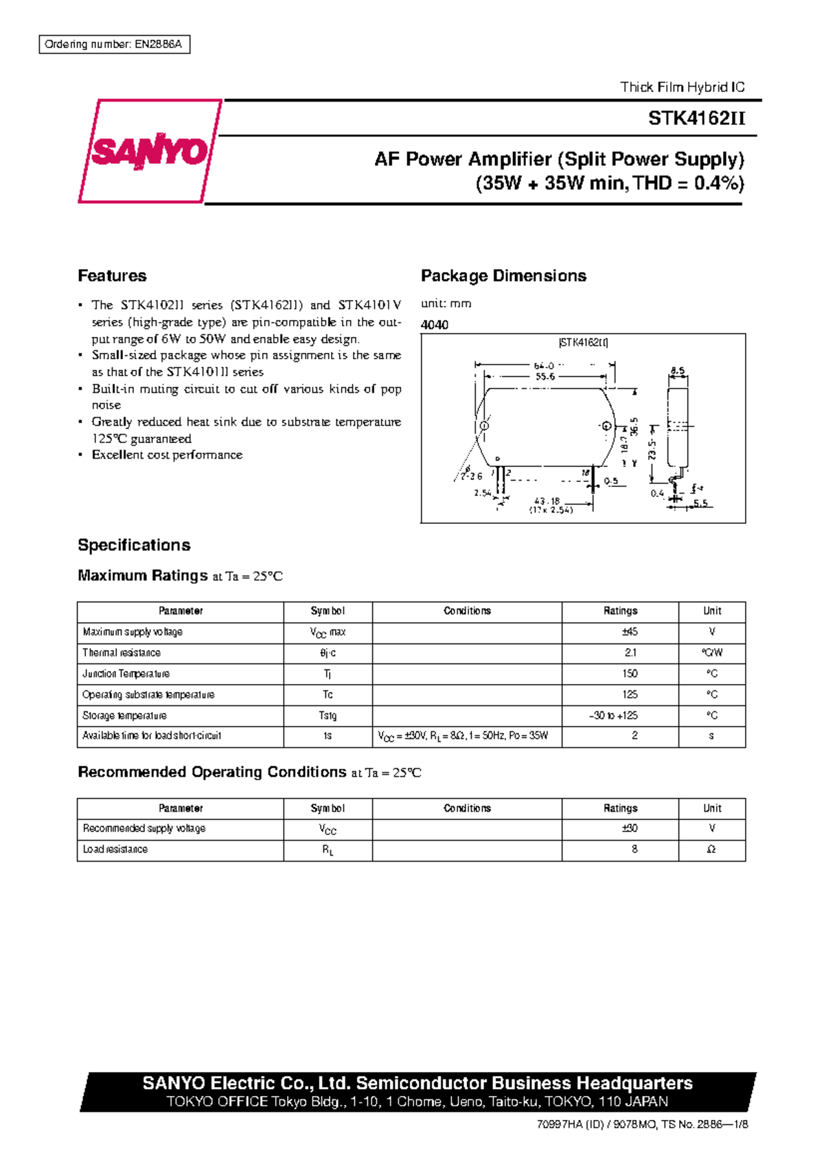 Pour les réparations d'amplis audio vintage ou les projets DIY ! Voici un circuit intégré hybride STK4162II de la marque Sanyo, neuf dans son emballage d'origine. Ce composant électronique est un amplificateur audio de puissance, souvent utilisé dans des chaines hi-fi, des amplis home cinema ou des systèmes de sonorisation d'une certaine époque. Le boîtier est le modèle STK4162II standard. Si ton appareil Sanyo ou autre a un souci de son ou ne fonctionne plus, remplacer ce module peut être la solution. C'est une pièce authentique, pas une copie. Parfait pour les techniciens en électronique, les bricoleurs avertis, ou les collectionneurs qui restaurent du matériel audio. Assure-toi que c'est bien la référence dont tu as besoin (vérifie sur la puce défectueuse). Un composant de qualité pour redonner vie à ton équipement audio. Livré tel quel, prêt à être soudé ou installé.