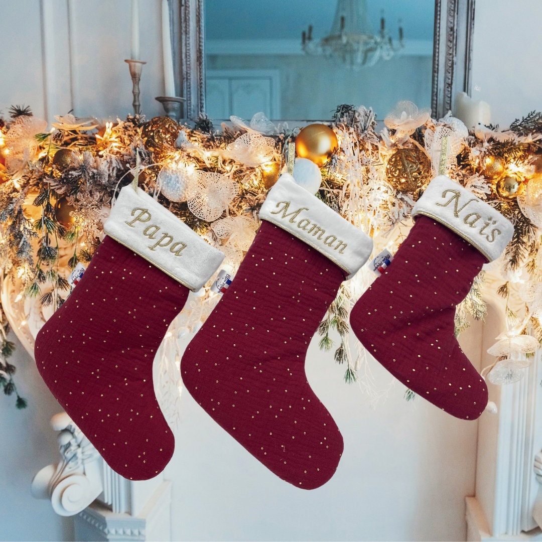 Pour un Noël encore plus personnalisé et magique ! Ce grand bas de Noël (40 cm de long, 25 cm de large) en polyester gris argenté est parfait pour accrocher à la cheminée. Le grand avantage ? Vous pouvez le faire broder avec le prénom de la personne à qui il est destiné (jusqu'à 12 lettres). Ainsi, chaque membre de la famille a SON bas, unique. C'est une idée cadeau adorable pour les enfants, les parents, les grands-parents... ou même entre amis. La marque est Forever Christmas. Le bas est neuf, dans son emballage. Si vous commandez 5 bas ou plus, contactez le vendeur pour lui envoyer la liste des noms par email. Un accessoire de décoration festive qui devient un souvenir personnalisé à sortir chaque année. Pratique pour que le Père Noël sache exactement où déposer les cadeaux de chacun !