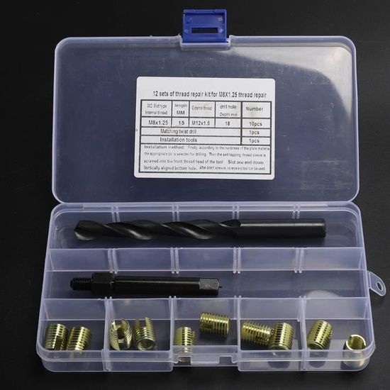 Un filetage métrique M14 x 1.25 est abîmé sur une pièce moteur, un étrier, ou un autre équipement ? Ce kit de réparation est votre sauveur ! Il contient 15 inserts hélicoïdaux en inox (hélicoils) et les outils nécessaires (foret, taraud, mandrin) pour les installer.