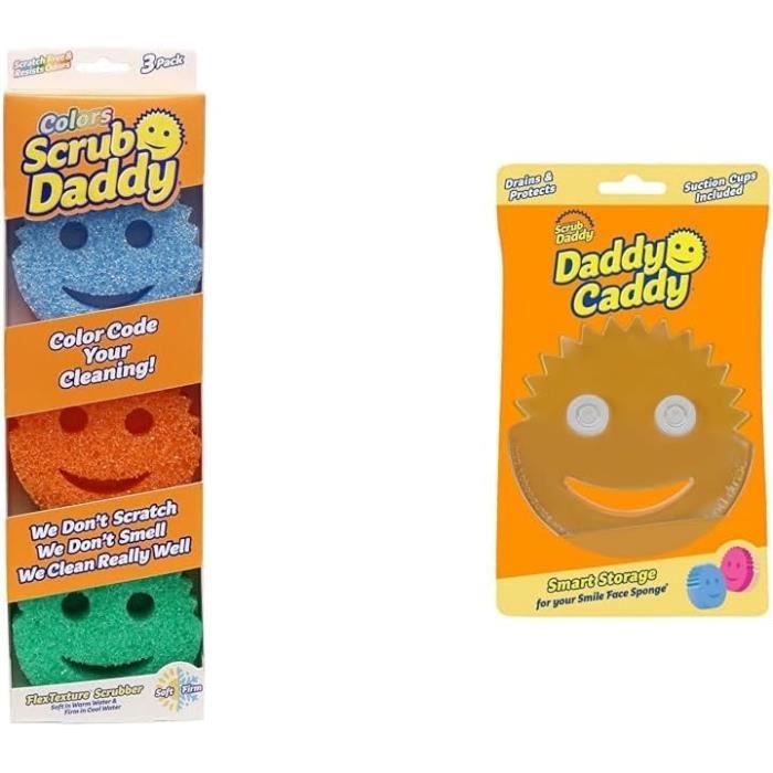 Coucou ! Découvre l'éponge Scrub Daddy, une petite révolution pour la vaisselle et le nettoyage ! Sa particularité ? Sa texture change selon la température de l'eau : ferme sous l'eau froide pour récurer les résistances, douce sous l'eau chaude pour les surfaces délicates. Elle est conçue pour ne pas rayer (sans rayures) et durer longtemps – jusqu'à 105 utilisations selon la marque. Forme sympa avec un grand sourire, elle est facile à saisir. Marque : Scrub Daddy. Parfaite pour la cuisine, la salle de bain, les plans de travail, les casseroles, les verres… Elle est neuve, dans son emballage coloré. Une alternative amusante et efficace aux éponges classiques. Tu vas adorer la voir sur ton évier ! Capacité de lavage annoncée : 105. Fini les éponges qui s'effritent ou qui grattent trop.