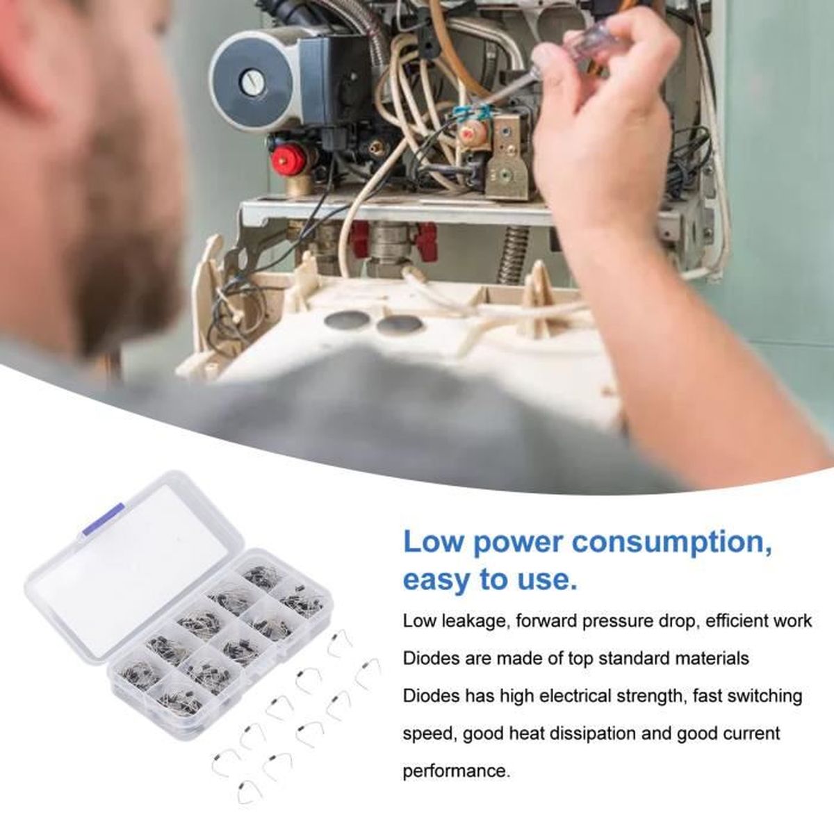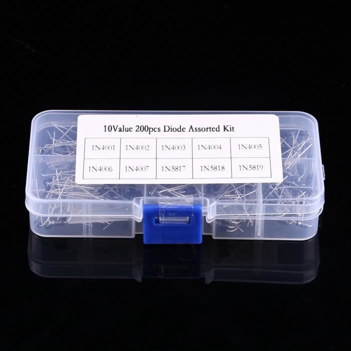 Pour les passionnés d'électronique, ce kit de 200 diodes redresseuses est idéal. Il contient 10 valeurs différentes : les classiques 1N4001, 1N4002, 1N4003, 1N4004, 1N4005, 1N4006, 1N4007, ainsi que les 1N57, 1N58 et 1N59. Le tout est fourni dans une boîte de rangement pratique. Marque générique, mais parfait pour les réparations, les projets DIY ou l'apprentissage. Chaque diode est neuve, jamais utilisée. Un essentiel dans votre atelier électronique. Plus besoin d'acheter chaque valeur séparément. Livraison rapide. Commandez ce kit et ayez toujours la diode qu'il vous faut sous la main !
