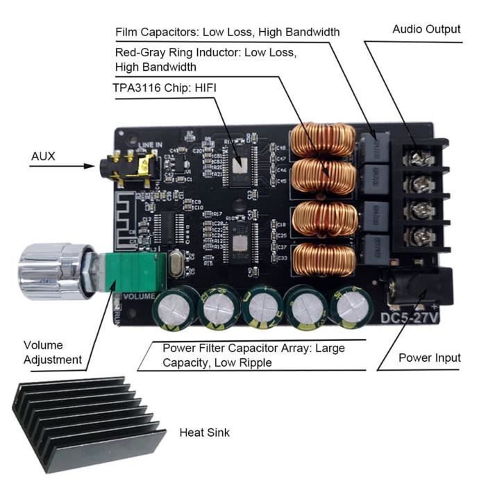 Les audiophiles et bricoleurs électroniques, voici une carte amplificateur puissante ! Basée sur le chipset TPA3255 de Texas Instruments, réputé pour son excellente qualité sonore. Le modèle est ZK-6002. Puissance de sortie : environ 600W par canal (2 canaux stéréo), donc très costaud pour piloter la plupart des enceintes. C'est un module nu (bare board), sans marque spécifique, universel. Il est neuf, sous emballage. Parfait pour construire ton propre ampli HiFi, pour un projet home cinema, ou pour améliorer un système audio existant. Tu auras besoin de l'alimenter avec une alimentation secteur adaptée (forte tension/ courant), et d'ajouter des dissipateurs thermiques si nécessaire. Un jouet de geek audio qui offre un excellent rapport performance/prix. Livraison rapide. Attention, c'est pour les personnes à l'aise avec l'électronique et les hautes tensions.