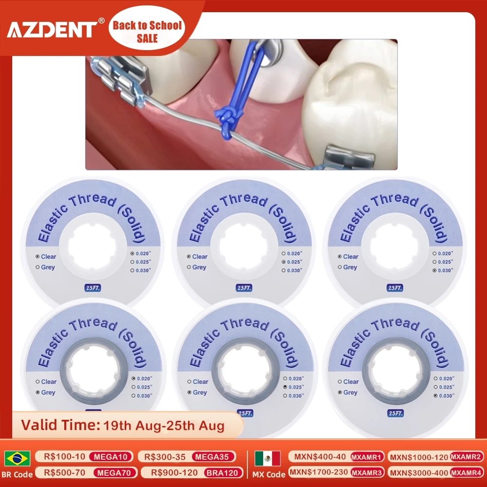Pour les professionnels de l'orthodontie ou les étudiants en dentaire, ce fil élastique solide est un matériel de base indispensable. Il est utilisé pour les ligatures et les tractions en orthodontie fixe. Ce rouleau fait 25 pieds de long (environ 7.6 mètres), ce qui permet de nombreuses utilisations. Différents diamètres sont disponibles : 0.020, 0.025, ou 0.030 pouces (à sélectionner selon vos besoins cliniques). Le matériau est du polyuréthane médical de qualité, offrant une bonne élasticité et mémoire de forme. Marque AZDENT, référence ZJTLX130006042. Produit neuf, sous emballage stérile d'origine. Fabriqué en Chine. Essentiel pour réaliser des ligatures individuelles autour des brackets, pour fermer des espaces, ou pour diverses mécaniques orthodontiques. Il est livré dans son tube protecteur. Un consommable fiable pour votre pratique quotidienne. Vérifiez bien le diamètre requis pour vos prescriptions. Livraison rapide pour ne jamais être en rupture de stock.
