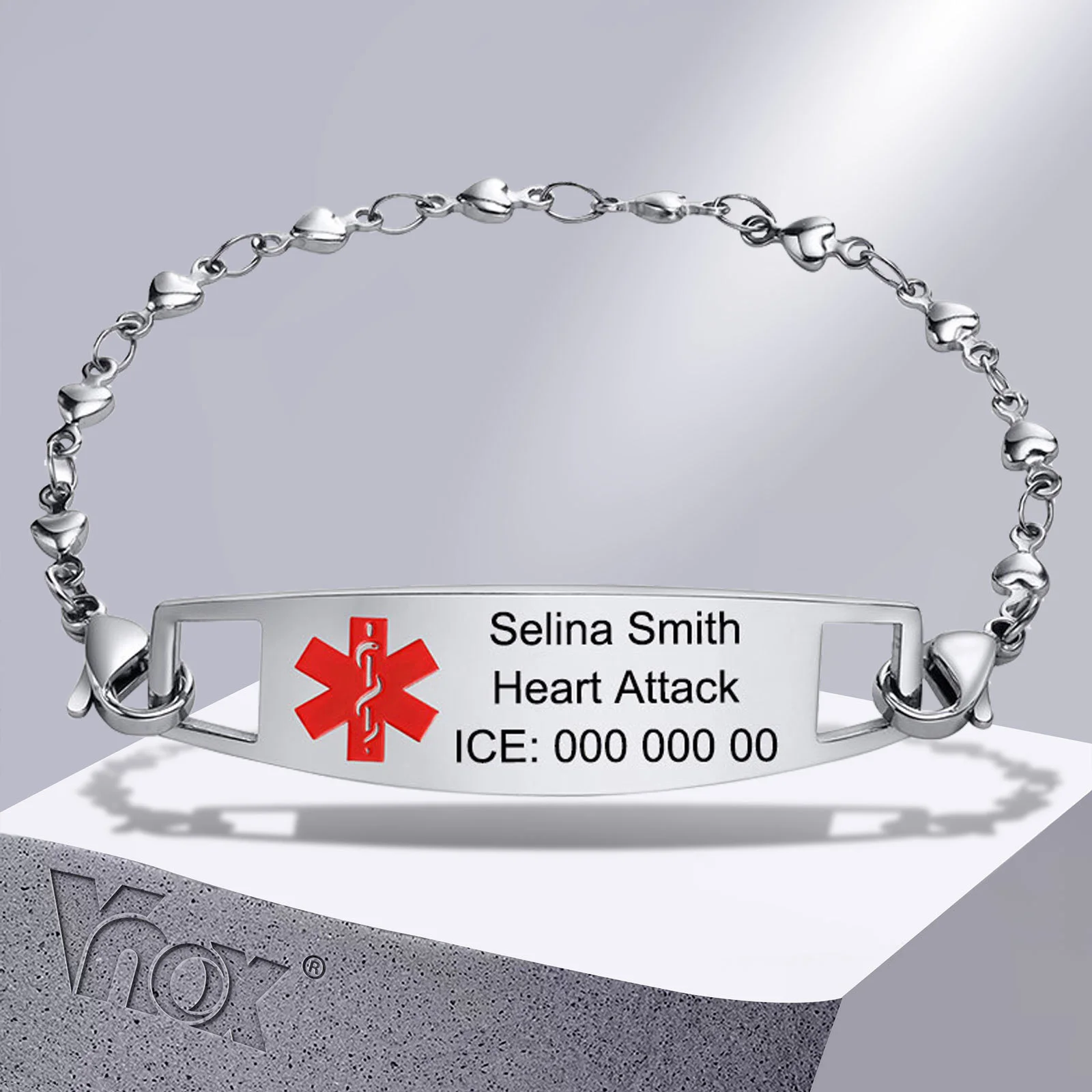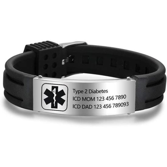 Un bracelet médical d'urgence pratique et stylé, de la marque Vnox. En acier inoxydable, il est solide, hypoallergénique et résiste à l’eau. Vous pouvez le faire graver avec un nom, un numéro de contact ou une info médicale importante. Il est neuf, avec ses étiquettes, et dispose d’une fermoir boîte/snap facile à mettre. Deux tailles de bracelet : 7,28 pouces ou 8,46 pouces, largeur 12 mm. Style à la fois bangle et chaine, passe partout au quotidien. Fabriqué en Chine, mais qualité bien contrôlée. Idéal pour les personnes ayant des allergies, des conditions médicales, ou simplement pour un proche dont on veut garder les infos à portée de main. Livré dans son étui.
