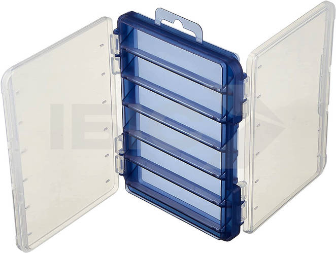 Les pêcheurs qui utilisent des leurres souples ou des cuillers vont adorer cette boîte à appâts Meiho F-86 ! Son grand plus : elle est réversible et pliable. Vous ouvrez un côté, vous prenez votre leurre, et vous pouvez même la retourner pour accéder à un autre compartiment. En plastique robuste, couleur bleu marine transparent, elle est fabriquée au Japon (qualité assurée). Référence RV-F86. Produit neuf, jamais utilisé, dans son emballage d'origine. Elle se glisse facilement dans un gilet ou un sac de pêche. Si vous en avez marre des boîtes qui prennent de la place ou qui s'ouvrent toutes seules, celle-ci est vraiment bien pensée. EAN : 4963189712675.